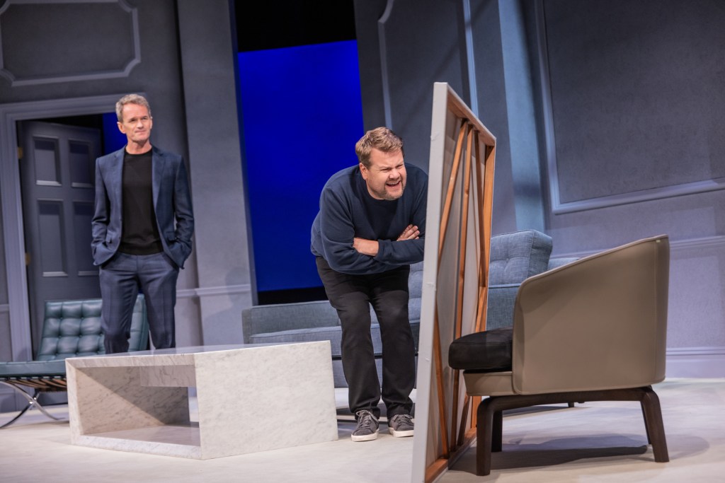 Neil Patrick Harris and James Corden in ART on Broadway. Photo by Matthew Murphy